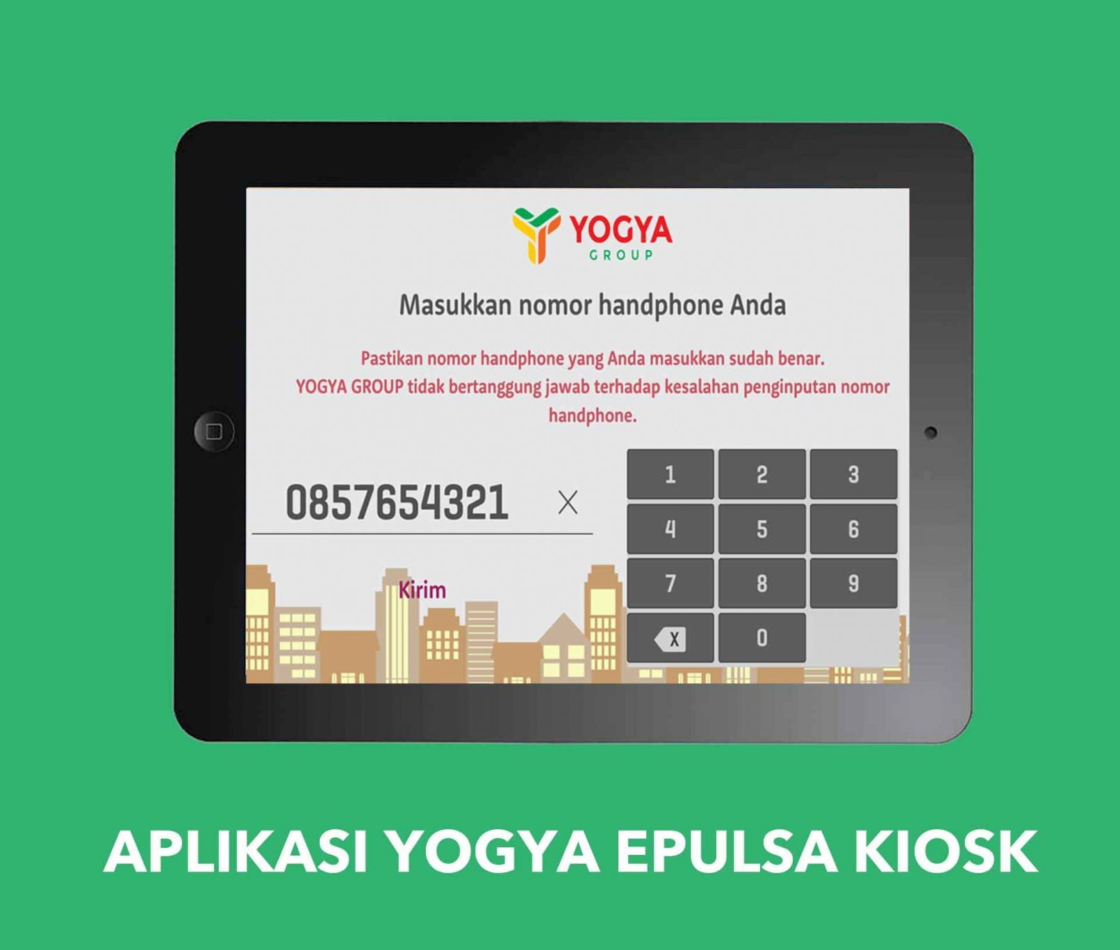 Aplikasi Yogya Epulsa Kiosk merupakah pembelian pulsa yang ditempatkan pada kiosk ipad yang terdapat di seluruh lokasi supermatket Yogya. Aplikasi Yogya Epulsa Kiosk terhubung dengan printer thermal untuk mencetak struk pembelian.